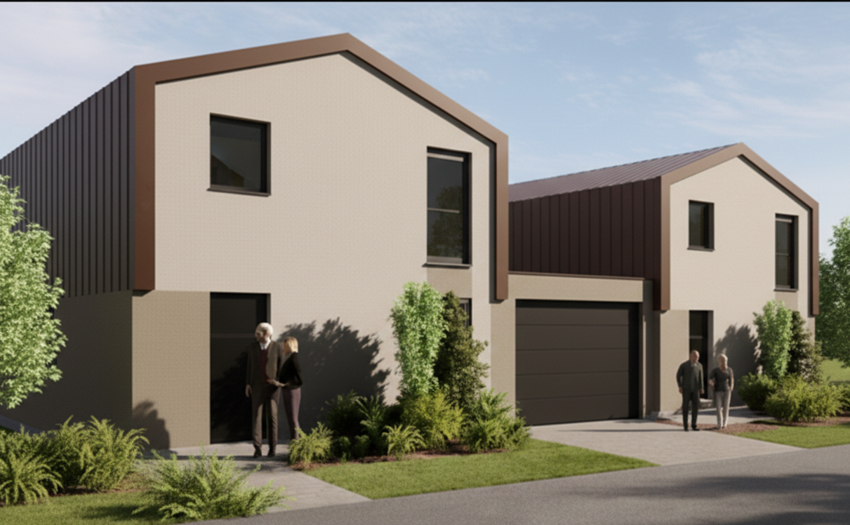 De type T4, ces maisons proposent des surfaces habitables généreuses de 85 m² et s’accompagnent de garages et de jardins avec terrasses allant de 480 à 532 m².